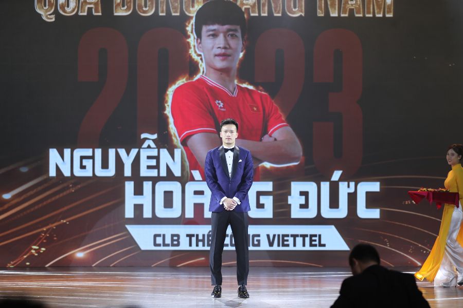 Khoảnh khắc tiền vệ Hoàng Đức nhận danh hiệu Quả bóng vàng Việt Nam 2023