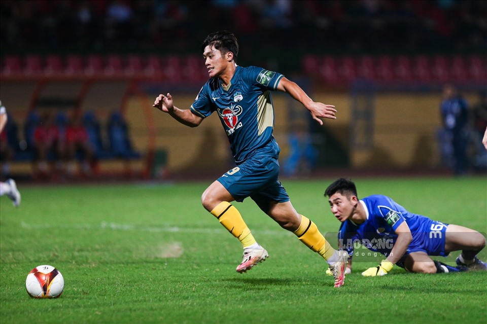 Phía bên kia, tiền đạo Nguyễn Quốc Việt của Hoàng Anh Gia Lai vào sân từ phút 62. Trong khoảng hơn 30 phút thi đấu trên sân, chân sút sinh năm 2003 đã để lại dấu ấn tốt khi chịu khó tranh chấp và hỗ trợ phòng ngự.