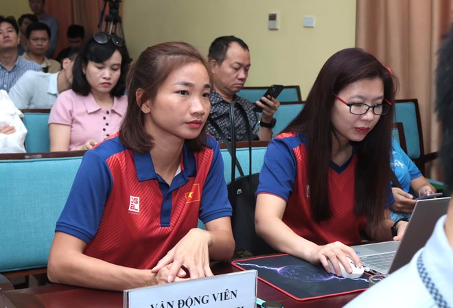 Vận động viên Nguyễn Thị Oanh (trái) được đề cử Cúp Chiến thắng 2023. Ảnh: Bùi Lượng