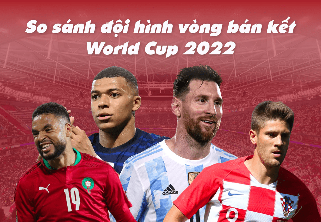 So sánh đội hình vòng bán kết World Cup 2022. Vượt qua nhiều đối thủ mạnh, 4 đội bóng xuất sắc nhất gồm Argentina, Croatia, Pháp và Maroc đã góp mặt ở vòng bán kết. Tâm điểm của lượt trận này là cuộc đối đầu giữa Argentina và Croatia, với sự góp mặt của Lionel Messi và Luka Modric - hai cầu thủ từng giành Quả bóng vàng.