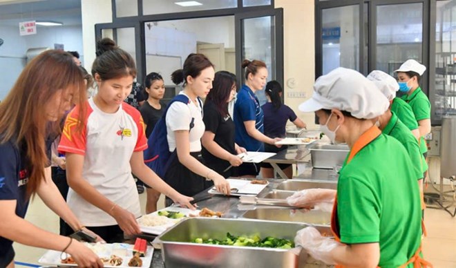 Vận động viên thể thao được đảm bảo dinh dưỡng trong các bữa ăn tại Trung tâm đào tạo vận động viên Cấp cao Quốc gia (Hà Nội). Ảnh: Cục TDTT Việt Nam