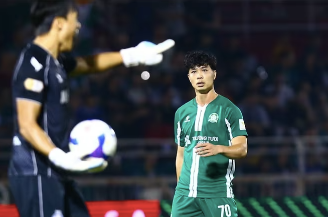 Công Phượng trong trận play-off mùa 2024/25, nơi đội Trường Tươi Bình Phước của anh thua Đà Nẵng 0-2 và không thể thăng hạng |