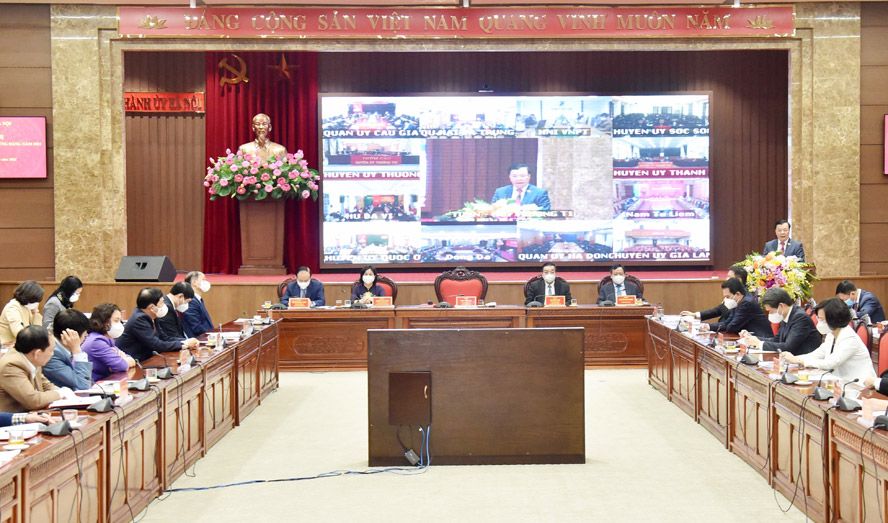 Sáng 8-1, Thành ủy Hà Nội tổ chức Hội nghị trực tiếp kết hợp trực tuyến tổng kết công tác xây dựng Đảng năm 2021, triển khai nhiệm vụ năm 2022; thay thế cho 6 hội nghị tổng kết năm của 5 ban Đảng và Văn phòng Thành ủy.