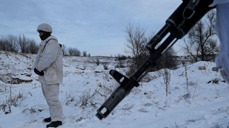 Một chiến binh của Cộng hòa Nhân dân Luhansk tự xưng tại một vị trí chiến đấu trên ranh giới chia cắt với các lực lượng vũ trang Ukraine gần khu định cư Frunze ở Vùng Luhansk, Ukraine. Ảnh: Reuters (chụp ngày 24/12/2021)