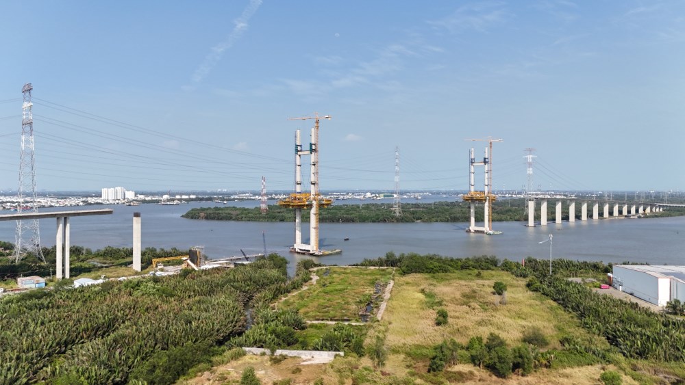 Cầu Bình Khánh (thuộc dự án cao tốc Bến Lức - Long Thành) được thiết kế theo kiểu dây văng hai mặt phẳng, khởi công từ tháng 8.2015 với tổng vốn đầu tư hơn 2.800 tỉ đồng. Cầu bắc qua sông Soài Rạp, nối huyện Nhà Bè và Cần Giờ của TPHCM. Sau thời gian thi công cầu tạm ngưng từ tháng 12.2018 khi đạt khoảng 70% tiến độ do vướng mắc nguồn vốn. Sau gần 5 năm ngưng trệ, cuối tháng 10.2023, nhà thầu đã đổ bê tông thi công trở lại.