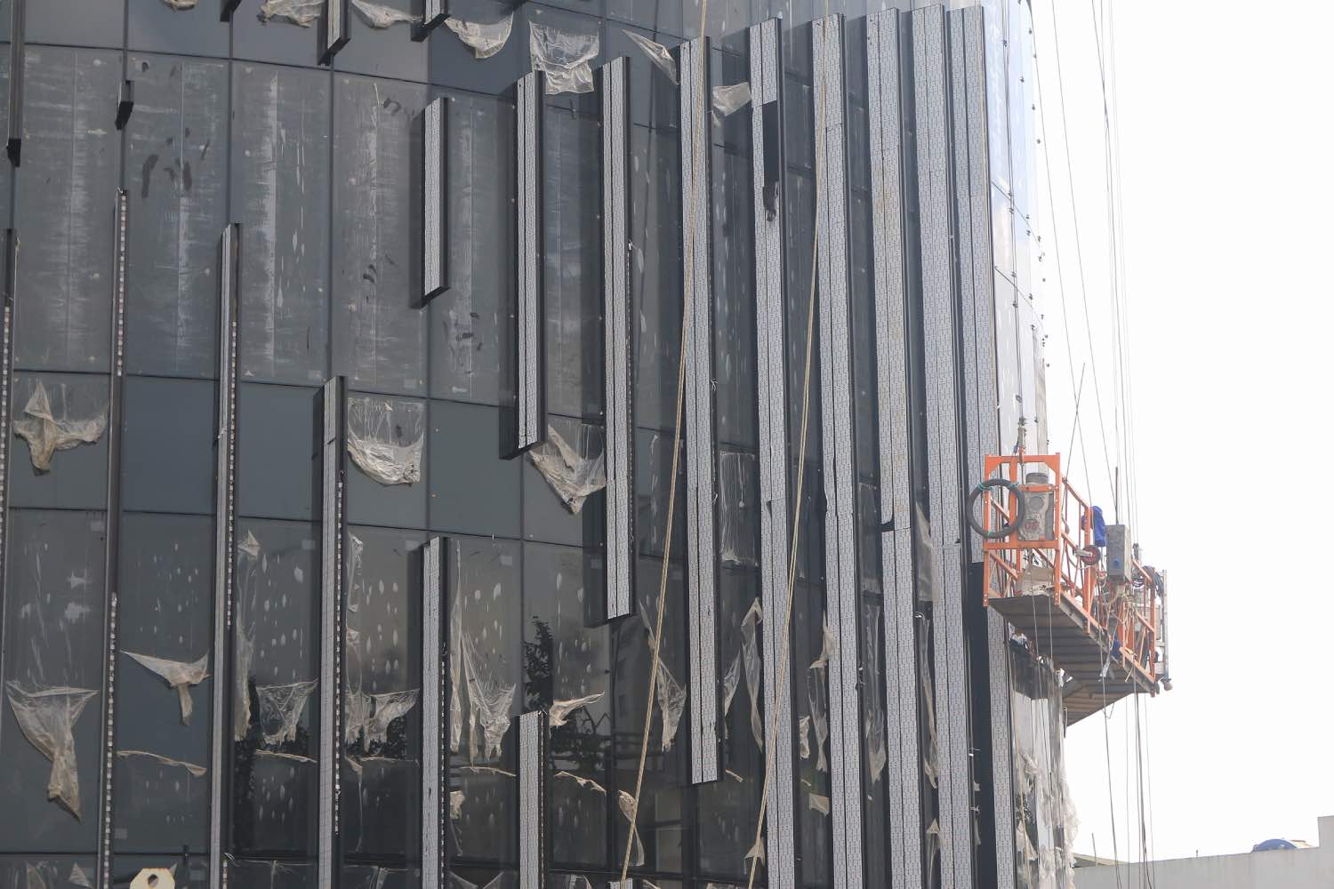 Phần kính của tòa nhà đã được lắp đặt, hoàn thiện. Ảnh: Khánh An