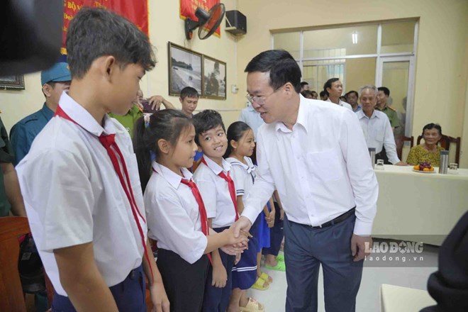 Chủ tịch nước Võ Văn Thưởng nhấn mạnh, địa phương cần quan tâm đến việc học hành của trẻ em trên đảo. Ảnh: Xuân Nhi