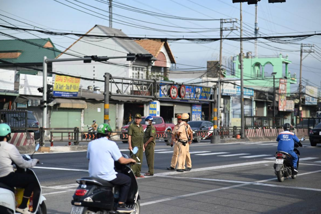 Ngày 15.12, Đội CSGT Phú Lâm thuộc Phòng CSGT (PC08, Công an TPHCM) đã phối hợp cùng Công an phường Bình Hưng Hòa, phường Bình Tân và lực lượng an ninh trật tự tại cơ sở tổ chức phân luồng giao thông tại giao lộ Lê Đức Anh - Liên Khu 4-5.