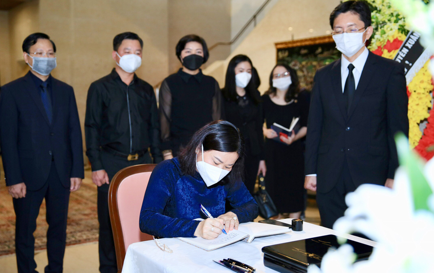 Phó Bí thư Thường trực Thành ủy Hà Nội Nguyễn Thị Tuyến ghi sổ tang tưởng niệm cựu Thủ tướng Nhật Bản Abe Shinzo.