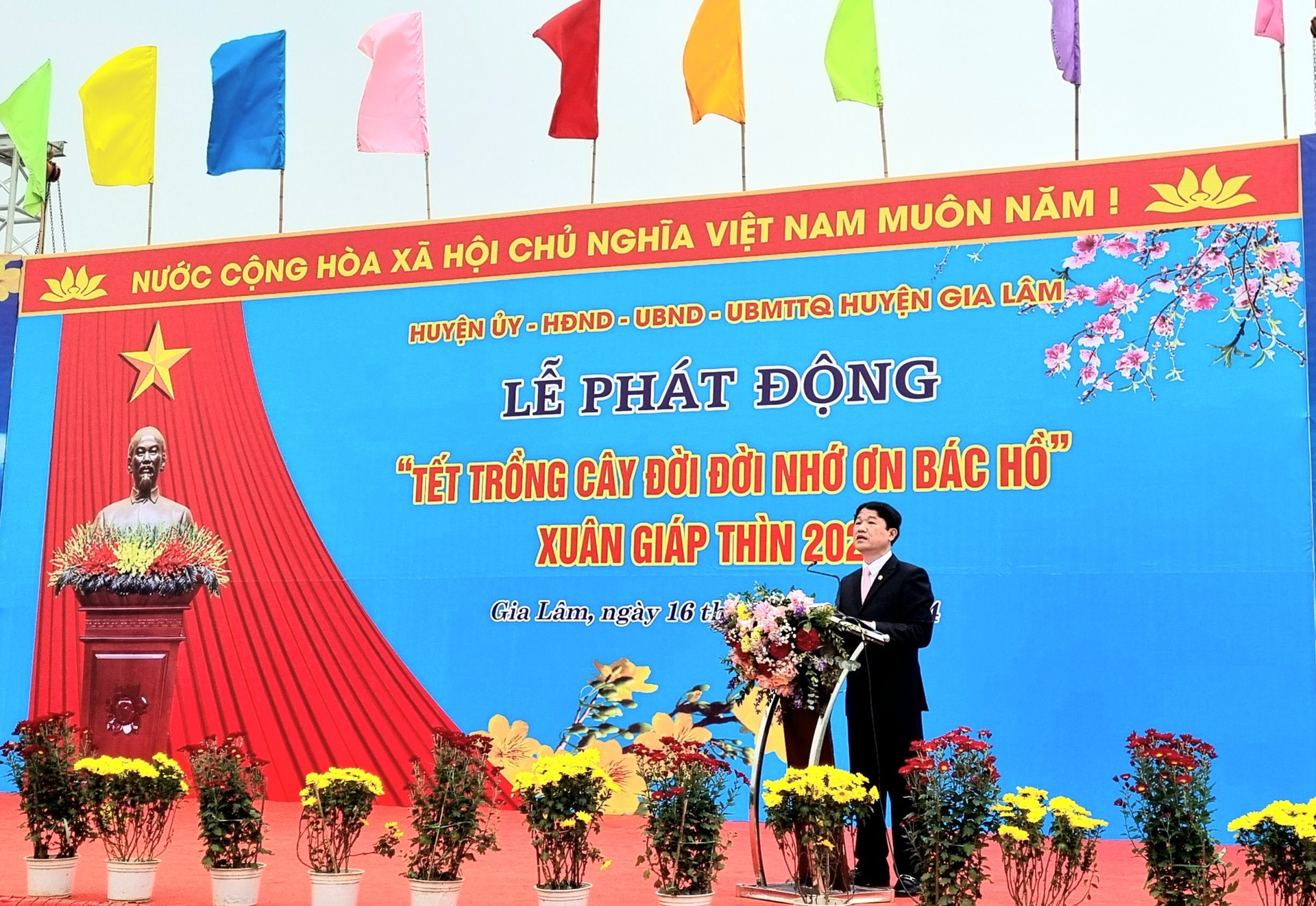 Tại buổi lễ, Phó Chủ tịch UBND huyện Gia Lâm Trương Văn Học nhấn mạnh: Hưởng ứng phong trào “Tết trồng cây” và tích cực thi đua mừng kỷ niệm 94 năm Ngày thành lập Đảng Cộng sản Việt Nam, 94 năm Ngày thành lập Đảng bộ thành phố Hà Nội, toàn huyện phấn đấu trồng mới 5.200 cây xanh, gồm cây đô thị, cây công trình. Trong đó có 3.850 cây thực hiện theo dự án đầu tư; 1.200 cây do các xã, thị trấn trồng; 150 cây do các trường học thực hiện.