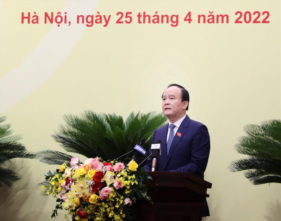 Chủ tịch HĐND TP.Hà Nội Nguyễn Ngọc Tuấn phát biểu tại phiên giải trình. Ảnh: HĐND TP