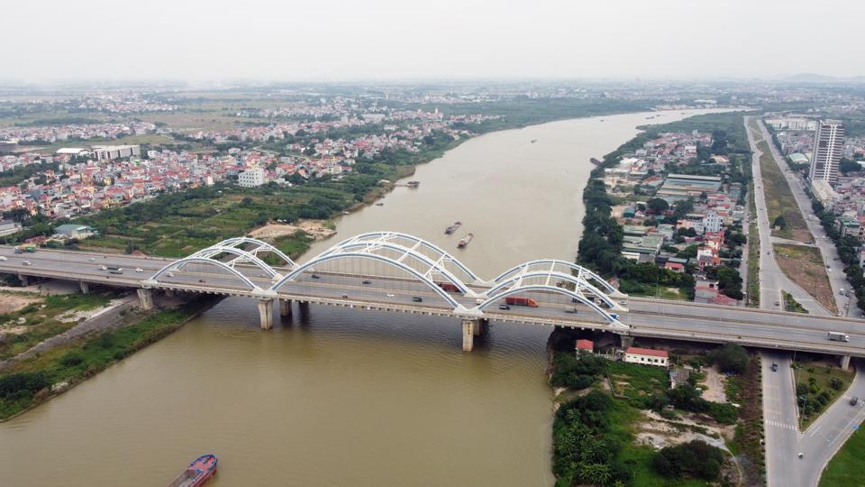 Phân khu đô thị sông Đuống đoạn qua cầu Đông Trù. (Ảnh: Hạ Vũ)