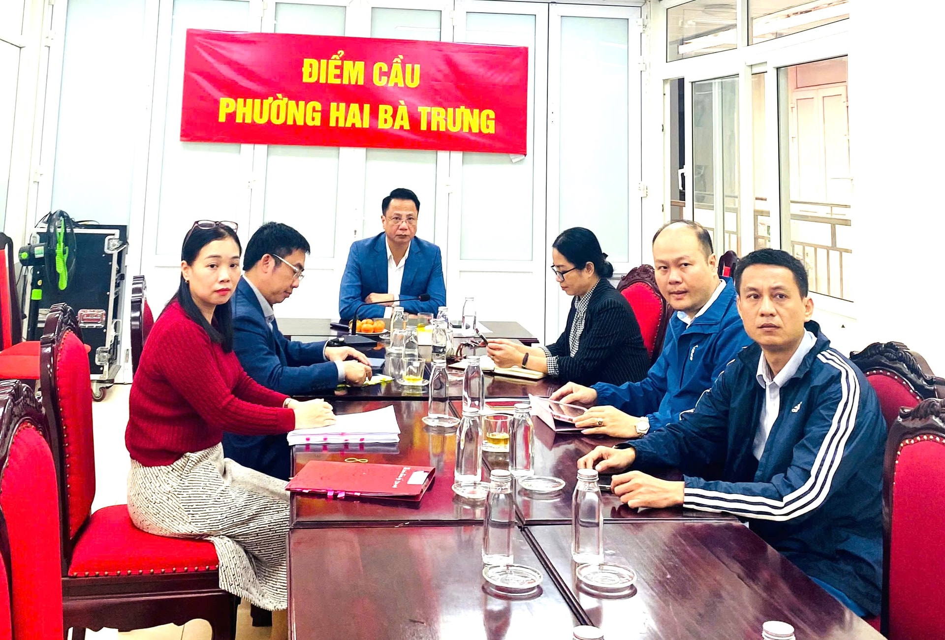 Các đại biểu tham dự hội nghị trực tuyến từ điểm cầu trụ sở UBND phường Hai Bà Trưng. Ảnh: CTV
