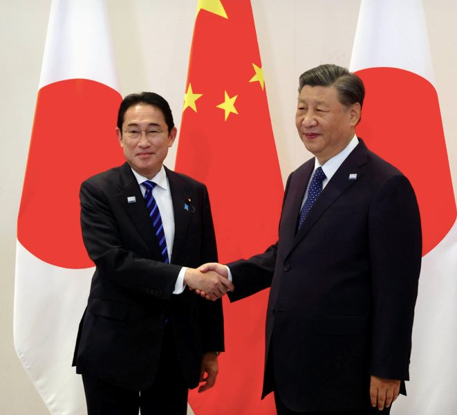 Thủ tướng Nhật Bản Fumio Kishida và Chủ tịch Trung Quốc Tập Cận Bình đã nhất trí xây dựng mối quan hệ chiến lược và cùng có lợi tại cuộc gặp ở San Francisco (Mỹ) vào tháng 11-2023.