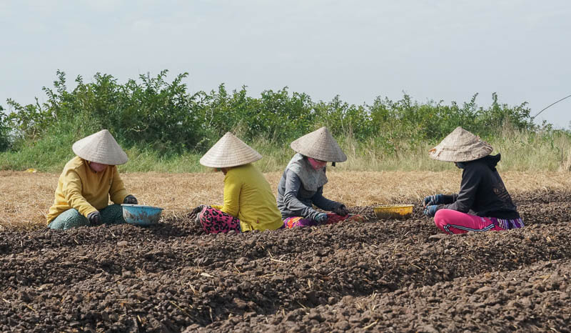 Trồng hành thuê là công việc thường nhật của những phụ nữ xứ biển thị xã Vĩnh Châu (Sóc Trăng).