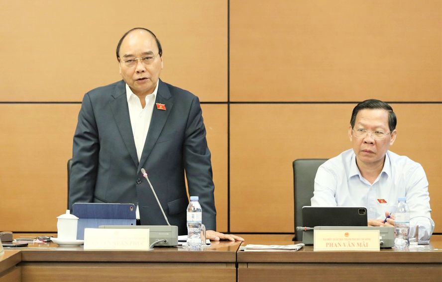 Ủy viên Bộ Chính trị, Chủ tịch nước Nguyễn Xuân Phúc (đại biểu Quốc hội Đoàn thành phố Hồ Chí Minh) nhấn mạnh, không thể chủ quan, không được thỏa mãn với thành tích bước đầu, bởi phía trước chúng ta còn rất nhiều khó khăn. Từ đó, Chủ tịch nước đặt ra vấn đề vì sao ngân sách nhà nước tăng rất cao trong khi doanh nghiệp còn rất khó khăn sau đại dịch. Đây là điều bất thường trong bối cảnh nền kinh tế tăng trưởng thấp nhất trong nhiều năm do tác động của dịch Covid-19.