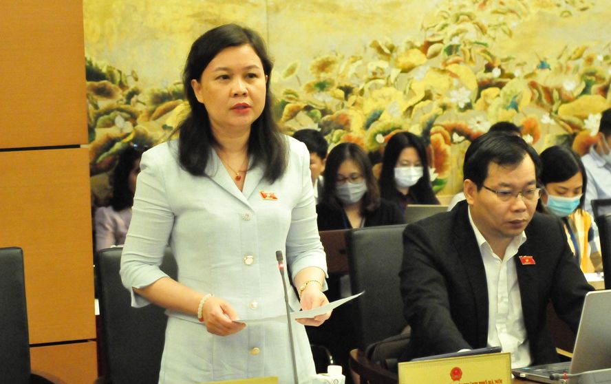 Đại biểu Nguyễn Phương Thủy (Đoàn thành phố Hà Nội) bày tỏ quan tâm đến đến kết quả thực hiện giám sát chuyên đề "Việc thực hiện các nghị quyết của Ủy ban Thường vụ Quốc hội về việc sắp xếp các đơn vị hành chính cấp huyện, cấp xã trong giai đoạn 2019-2021".