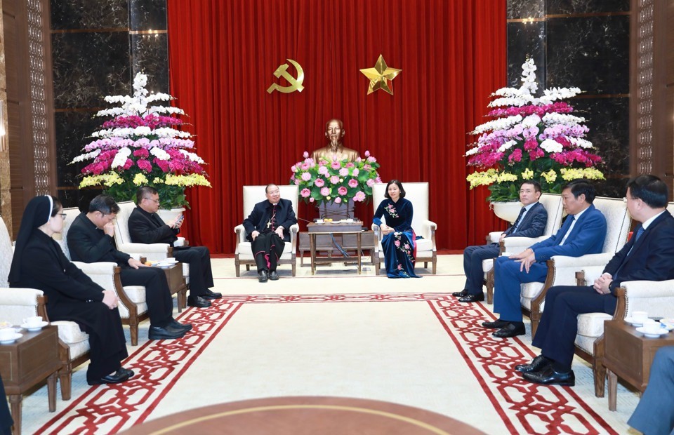 Nhân dịp đón Tết cổ truyền của dân tộc, Phó Bí thư Thường trực Thành ủy Nguyễn Thị Tuyến chúc Tổng Giám mục Vũ Văn Thiên, các vị chức sắc cùng toàn thể bà con giáo dân Tổng Giáo phận Hà Nội một năm mới mạnh khỏe, phấn khởi, an lành và đạt những thành công mới.