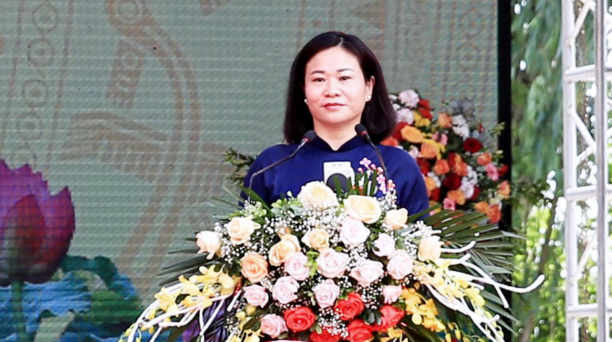 Phó Bí thư Thường trực Thành ủy Hà Nội Nguyễn Thị Tuyến phát biểu tại buổi lễ.
