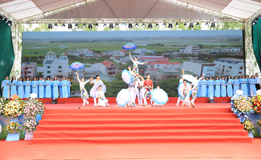 Sau 10 năm triển khai thực hiện Chương trình mục tiêu quốc gia về xây dựng nông thôn mới, 25/25 xã của huyện đều đạt 19/19 tiêu chí xây dựng nông thôn mới và huyện đạt 9/9 tiêu chí. Trong đó, nhiều nhóm tiêu chí đạt kết quả cao như: Tỷ lệ đường trục chính, đường liên thôn, liên xã được cứng hóa và đạt 100%; tỷ lệ trạm y tế các xã đạt chuẩn theo quy định của Bộ Y tế đạt 100%; tỷ lệ thôn, tổ dân phố có nhà văn hóa hoặc nơi sinh hoạt văn hóa cộng đồng đạt 100%; tỷ lệ người dân tham gia bảo hiểm y tế đạt 91,5%. Đặc biệt, đến hết năm 2020, thu nhập bình quân đầu người đạt 52 triệu đồng/người/năm (tăng 3,5 lần so với năm 2010) và năm 2021 đạt 55 triệu đồng/người/năm.