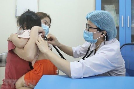 | Bác sỹ khám cho bệnh nhi xuất hiện triệu chứng cúm A. (Ảnh: TTXVN) |