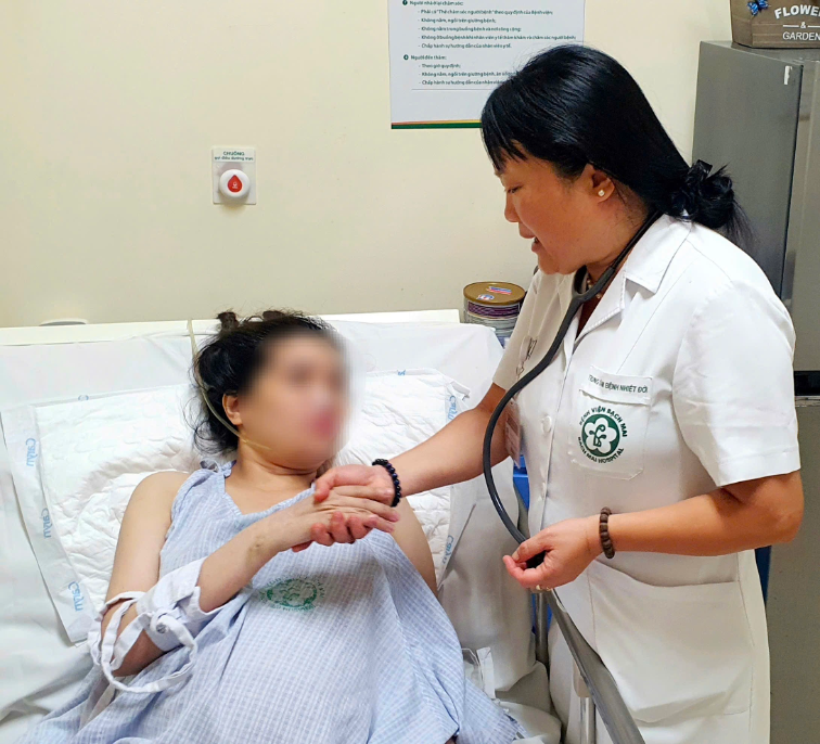 Tuần 26, chị sốt cao, đau đầu liên tục. Sau 5 ngày điều trị tích cực, bệnh ít thuyên giảm, sốt không dứt và đau đầu tăng dần. Ngày 7-7-2025, chị H được chuyển gấp đến Bệnh viện Bạch Mai với chẩn đoán ban đầu: Sốt không rõ nguyên nhân, thai IVF 26 tuần, rau tiền đạo.
