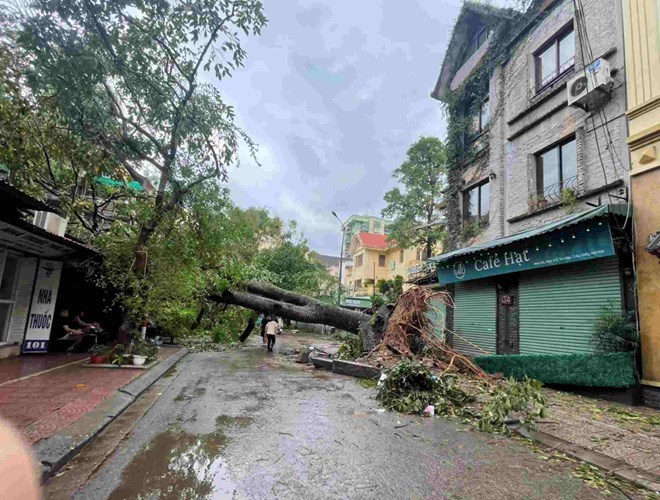 Nhiều tuyến đường của Hà Nội cây xanh đổ, môi trường sẽ ô nhiễm gây ra nhiều dịch bệnh sau khi bão tan. Ảnh: Hà Lê