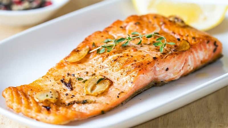 Để có giấc ngủ ngon vào buổi tối, một trong những thực phẩm nên ăn vào bữa trưa là cá hồi. Ảnh: Kiều Vũ