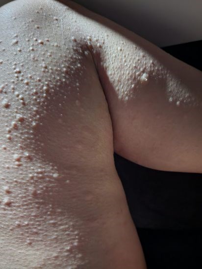 Theo chị H, ban đầu, dưới 2 nách xuất hiện loạt những nốt như rôm, cứ nghĩ chắc do mình ăn đồ nóng nhiều. Thế là uống liên tục chanh, quất. Ai dè tần suất ngứa tăng lên. Trên da xuất hiện các nốt như muỗi đốt, côn trùng cắn. Lúc này bắt đầu tìm các loại kem bôi nhưng không đỡ. Một buổi sáng thức dậy, toàn bộ phần đùi nổi nốt sần lên đã gọi đơn vị tới xét nghiệm nhưng các chỉ số đều bình thường. Tiếp theo đó những cơn ngứa tăng dần, phải tới bệnh viện lớn ở Hà Nội đều nhận kết quả dị ứng. Bác sĩ cho truyền, tiêm, dùng thuốc... đủ cả nhưng cứ đến đêm, 2 bàn tay bàn chân ngứa điên cuồng như thể ai cấu, chọc từ bên trong ra.