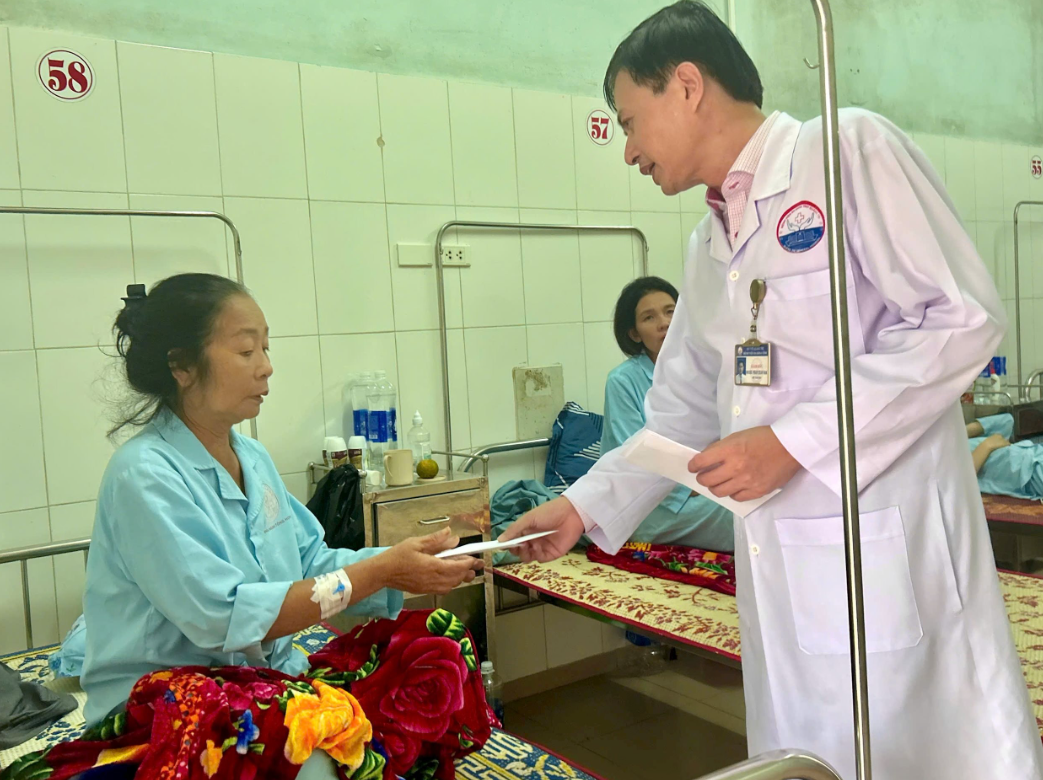 Lãnh đạo bệnh viện thăm hỏi bệnh nhân đang điều trị. Ảnh: BVCC