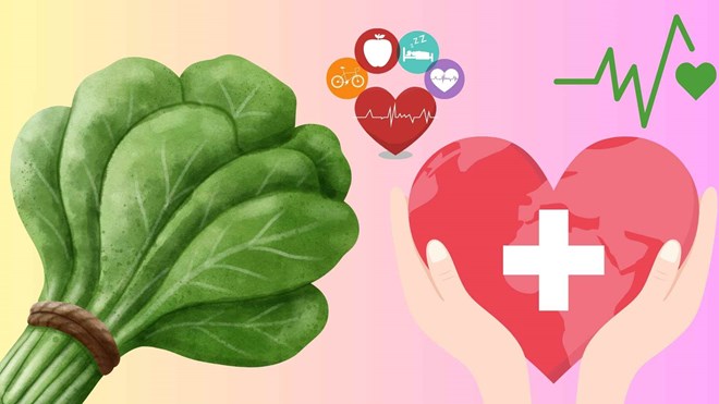Rau chân vịt giàu dinh dưỡng, giúp sáng mắt, bổ gan, tăng sức đề kháng và làm đẹp da. Loại rau mềm, dễ chế biến này rất thích hợp cho bữa cơm mùa hè. Đồ họa: Huyền Trang