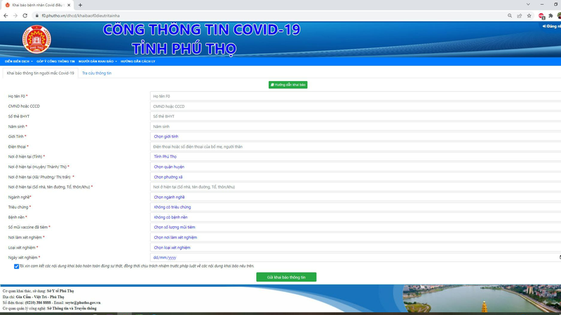 Theo đó, thực hiện chỉ đạo của Chủ tịch UBND tỉnh Phú Thọ về việc triển khai các biện pháp chủ động, quản lý rủi ro phòng, chống dịch COVID-19 trong tình hình mới, Sở Y tế Phú Thọ đã phối hợp với Sở Thông tin và Truyền thông, VNPT Phú Thọ triển khai Ứng dụng khai báo y tế, quản lý F0 điều trị, cách ly tại nhà nơi cư trú (sau đây gọi tắt là “Ứng dụng quản lý F0”) tại địa chỉ https://f0.phutho.vn.