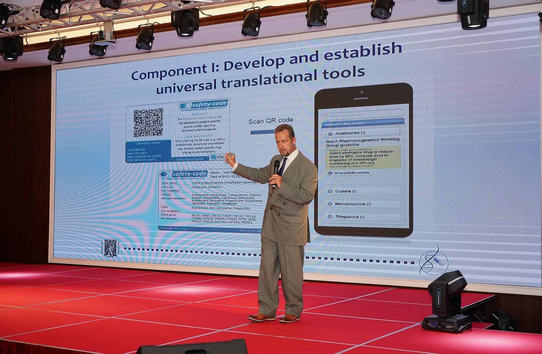 Để minh họa cho hiệu quả của việc ứng dụng di truyền vào dự phòng nguy cơ phản ứng có hại của thuốc, Giáo sư dược lý di truyền George P. Patrinos - Giám đốc Khoa học tổ chức The Golden Helix Foundation (Anh), đồng Chủ tịch mạng lưới hợp tác y học hệ gen toàn cầu (G2MC), kiêm Cố vấn Chiến lược của GeneStory, đã dành phần lớn thời gian nói về chương trình U-PGx - một dự án nghiên cứu lớn ở châu Âu bắt đầu từ tháng 01/2012 đến nay, với sự tham gia của 7 nước Châu Âu, 8000 bệnh nhân và nguồn quỹ 15 triệu Euro.